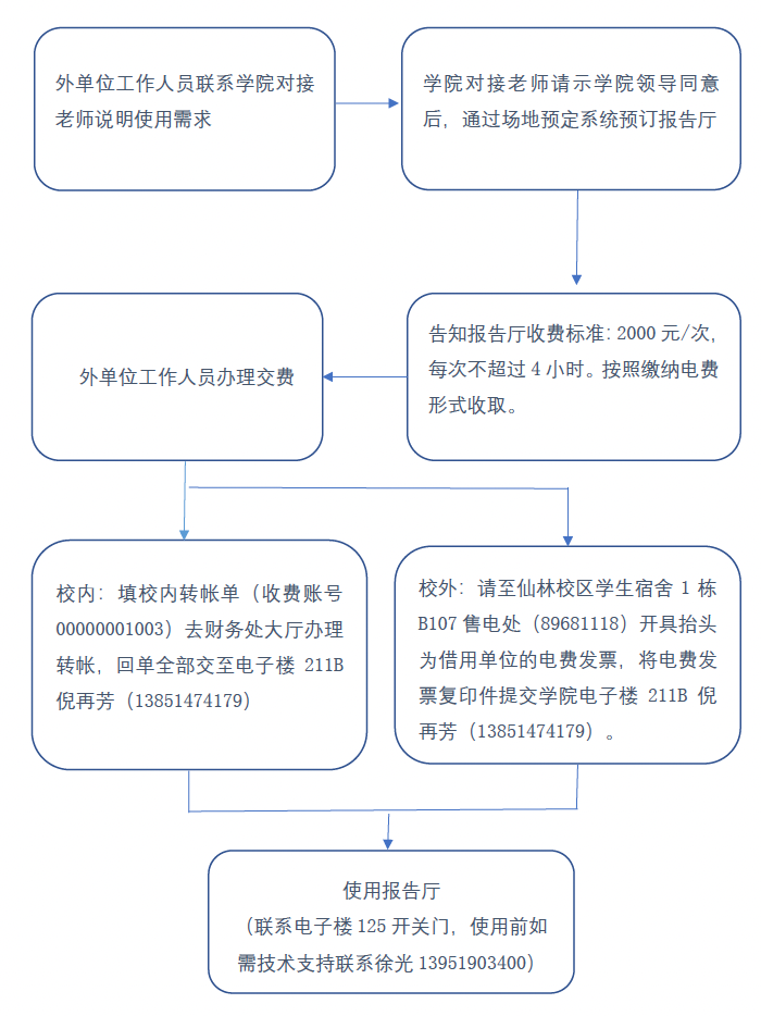 电⼦科学与⼯程学院124报告厅外单位借⽤流程图