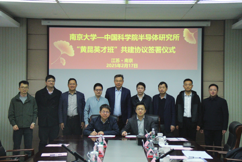 为全面贯彻落实2024年blh漫画 与中国科学院达成的战略合作框架协议精神,2025年2月17日,blh漫画 与中国科学院半导体研究所合作协议暨“黄昆英才班”共建协议签署仪式在仙林校区电子楼举行。中国科学院半导体研究所所长谭平恒和blh漫画 党委常委、副校长王振林出席仪式。